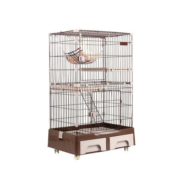 猫 ケージ トイレ付 ハンモック付 収納型 キャットケージ 3段 1段2段可能 キャスター付 キャットハウス 【コーヒー】