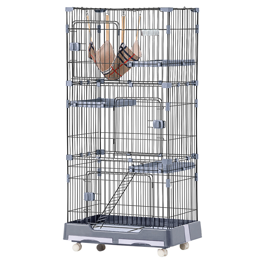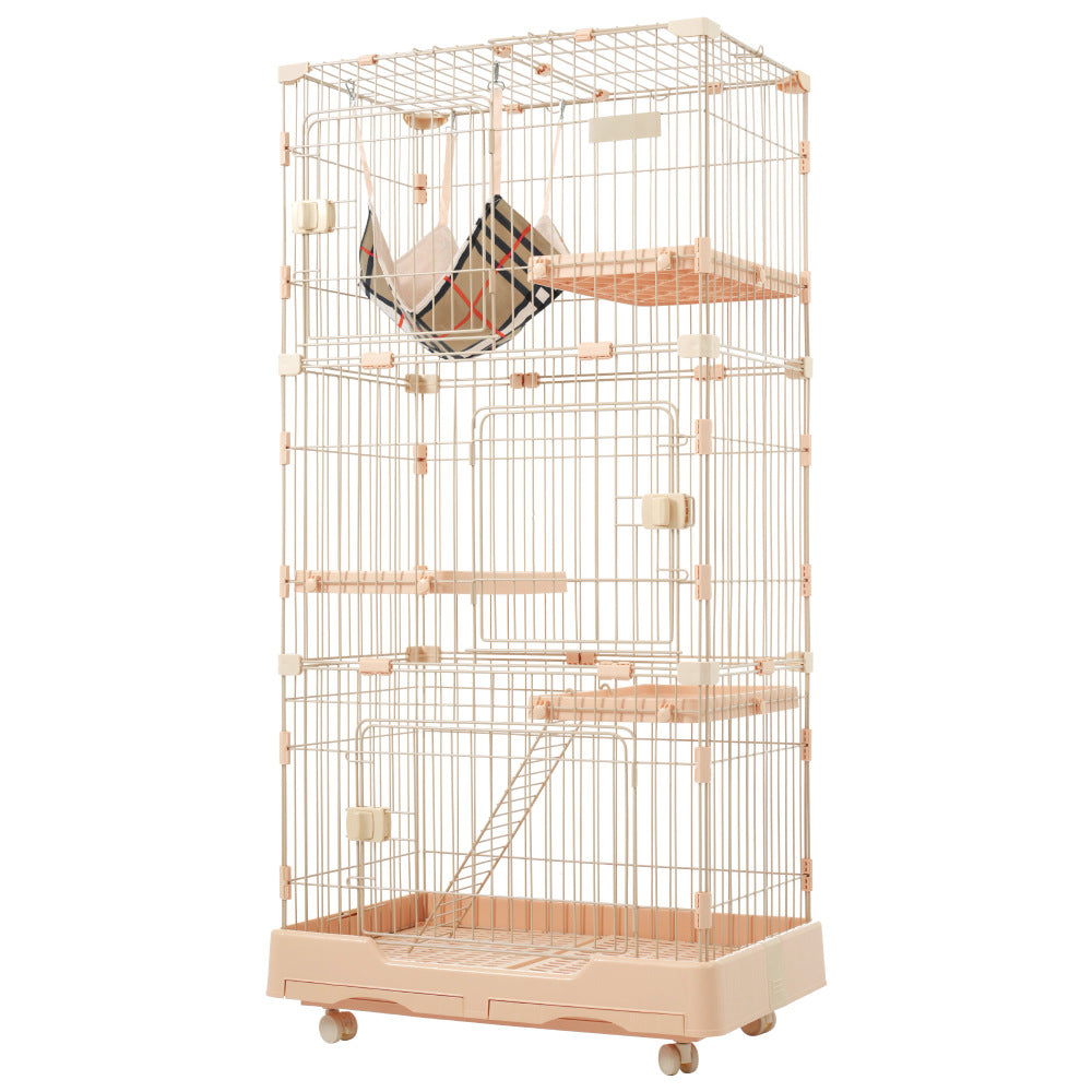 【TX287474】猫 ケージ キャットケージ ペットケージ キャスター付 猫ゲージ 大型 多頭飼い ネコドア キャットハウス 1段2段3段可能 留守番 保護 脱走防止 おしゃれ (3段,ベージュ)