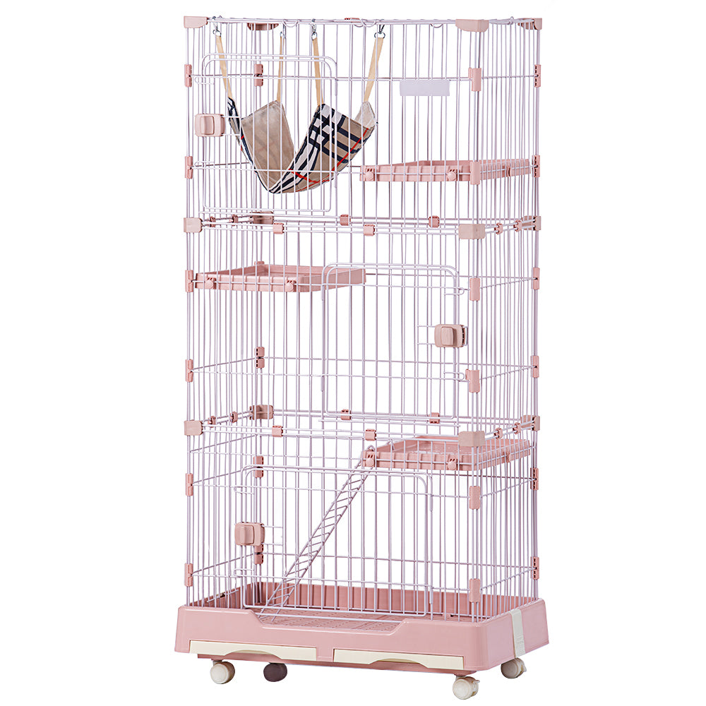 【ハンモック、広い棚板のご用意】可愛い猫ちゃんが利用してのんびりリラックスできます。それに、ケージから取り出すことも簡単で、掃除しやすいです。